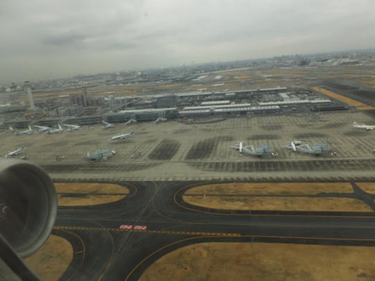 飛行機は出発が遅れて羽田への飛行は